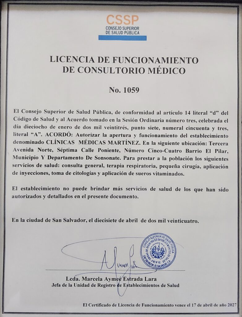 La Dra. Verónica Martínez, Médico General en Sonsonate, ofrece una variedad de procedimientos médicos esenciales para el diagnóstico y tratamiento de diferentes condiciones de salud. Su enfoque profesional y cercano garantiza una atención segura y efectiva para cada paciente.
